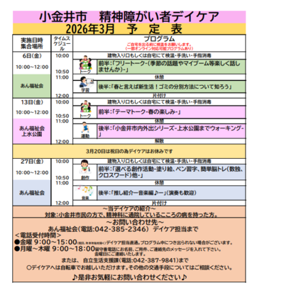 令和8年3月小金井市デイケアプログラム